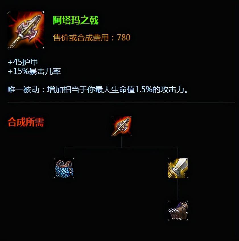 这是最适合上单玩家出的一件装备,每1000点生命值就加15攻击力,而且最开始的时候是加20点的,纯肉的英雄出了以后简直不要太离谱,所以当时经常会看到出好几件狂徒的德玛和蒙多,最后也被拳头给删除啦。