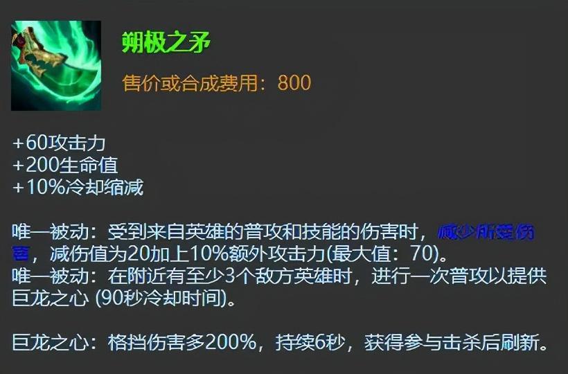 当年合成黑切的必备装备,也是AD类上单前期必出的装备,10的CD和10的穿甲,两个长剑加600多金币就能够合成,伤害爆炸不说,而且还能合成幽梦黑切等大件,性价比高的离谱。