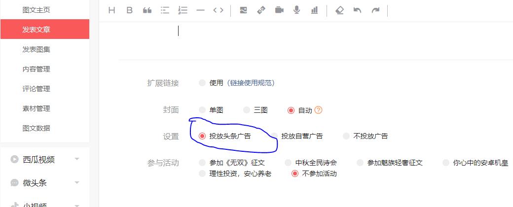 3,如果你手机上传的视频没有收益,因为你没有开通头条号,你只是在APP上发布是没有收益的,我们的收益都是靠头条广告展示得来的,发布的时候要勾釆放头条广告.