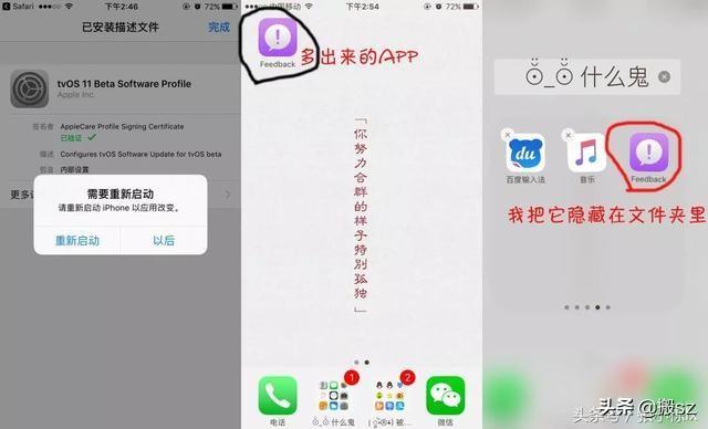 安装完成,重新启动,会在手机桌面上出现一个App,放着就可以,或者把它移动到文件夹里(图三)