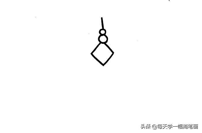 1、首先我们画出一串吊饰,先画两个大小不一样的圆形,下面再画一个菱形。