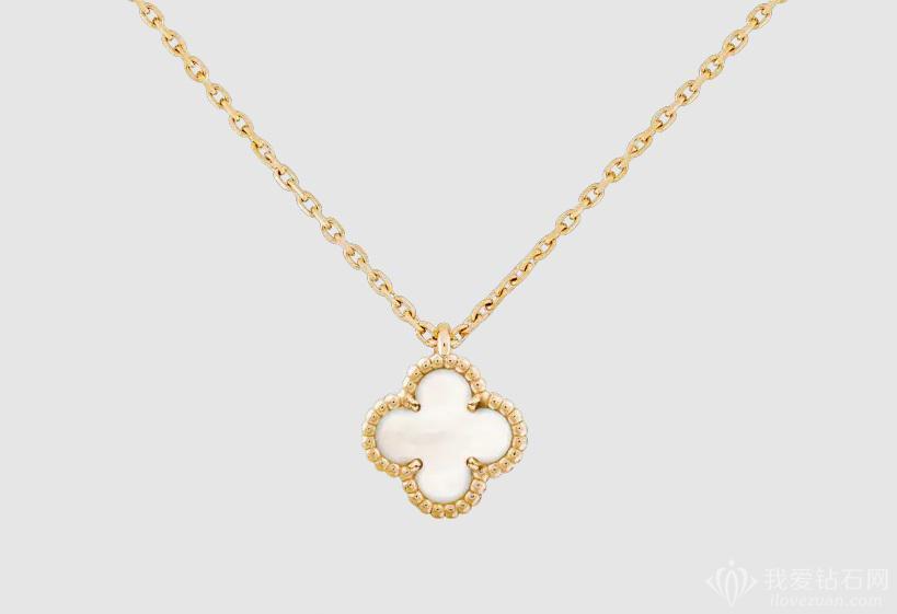 梵克雅宝官网的四叶草项链报价都是在上万元,其中最便宜的一款是梵克雅宝于2007年推出Sweet Alhambra系列珠宝作品,以黄K金镶嵌白色珍珠母贝,当前价格11100元。