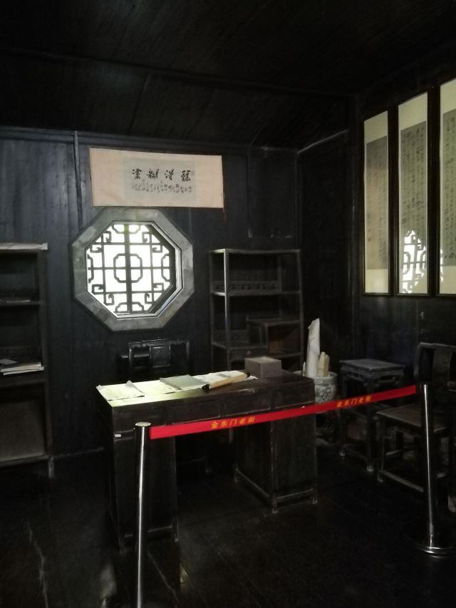 庭院东侧有一个八角门,里面是小书斋。这里是板桥读书、写字、作画的地方。书斋前有一方很小的天井,幽雅宁静。