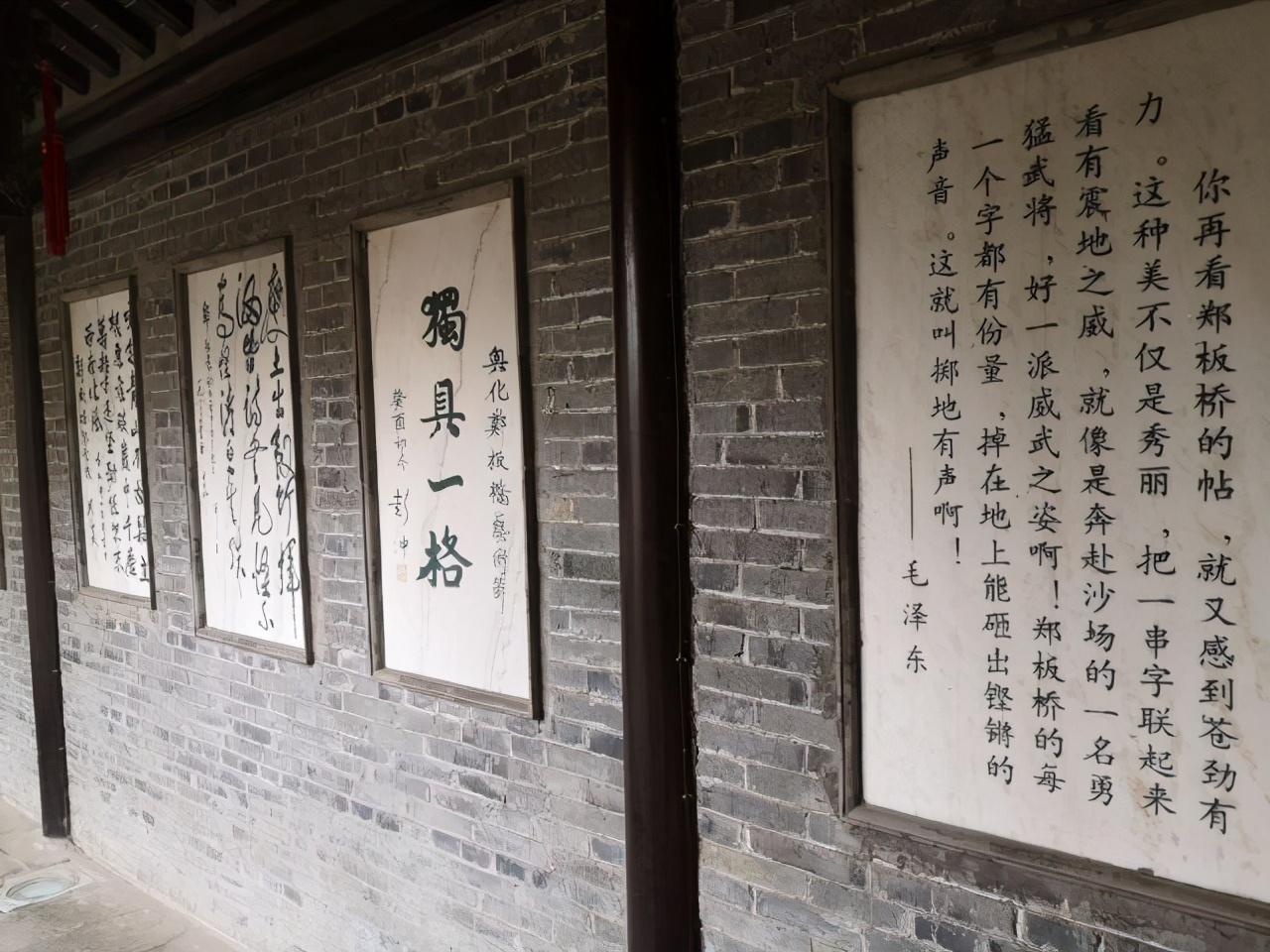 故居门额上有赵朴初先生题写的“郑板桥故居”5个大字,门厅上方悬挂着刘海粟先生题写的“郑燮故居”匾额。照壁后有一方天井,庭院的角落栽种了许多竹子,四周还种有兰花、荷花、松柏和腊梅。