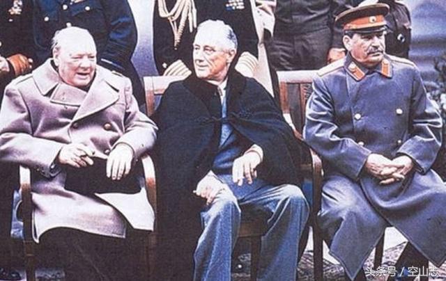 二战的三巨头,从左到右是丘吉尔,罗斯福,斯大林
