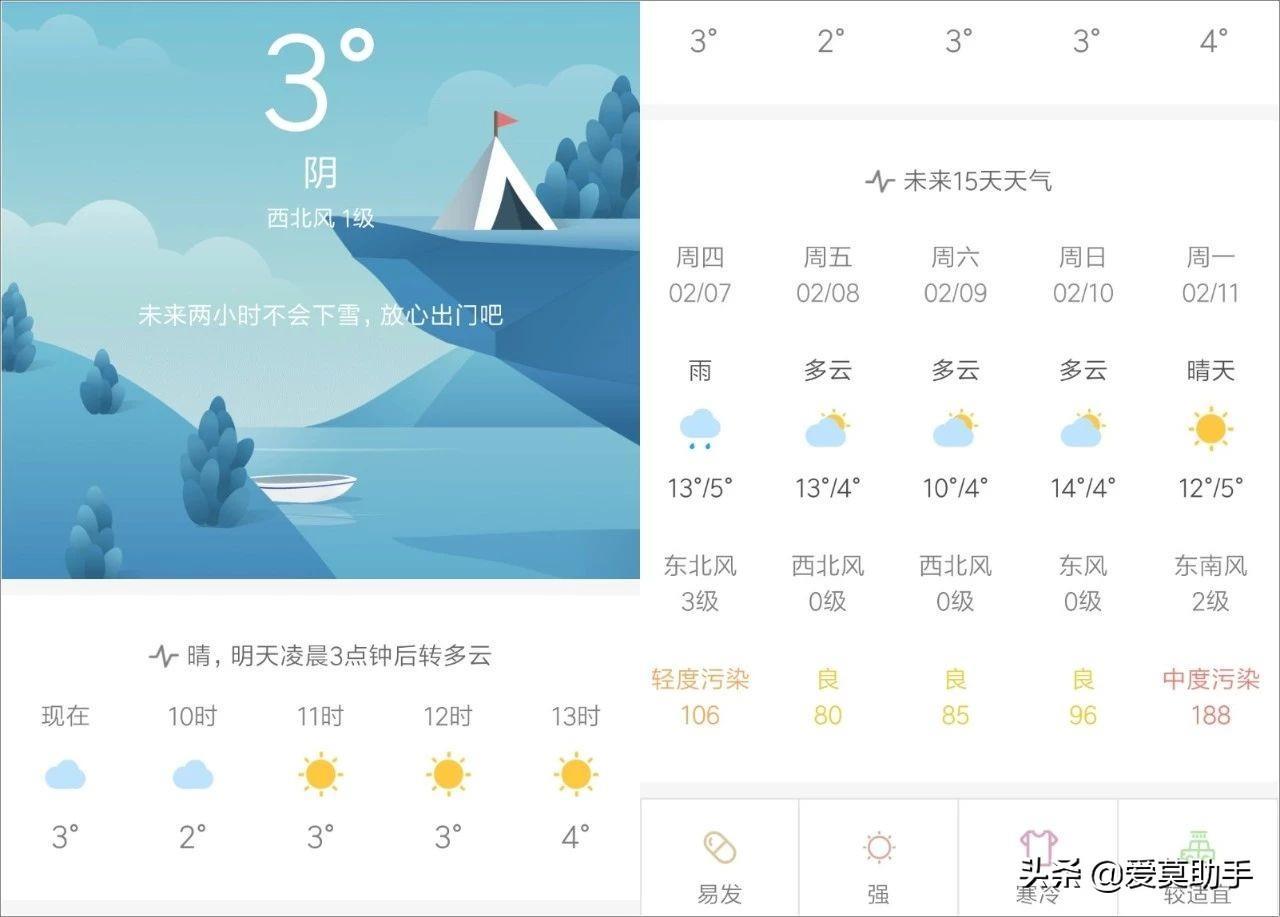 春节期间,外出访友等随时掌握天气情况相当的重要。简洁美观的天气预报小程序——云彩天气,可以随时查看各城市的当前气温,未来72小时的天气状况以及未来半个月的天气情况。可通过左右滑动查看空气质量指数,比如降雨概率,湿度、风速以及能见度等等。