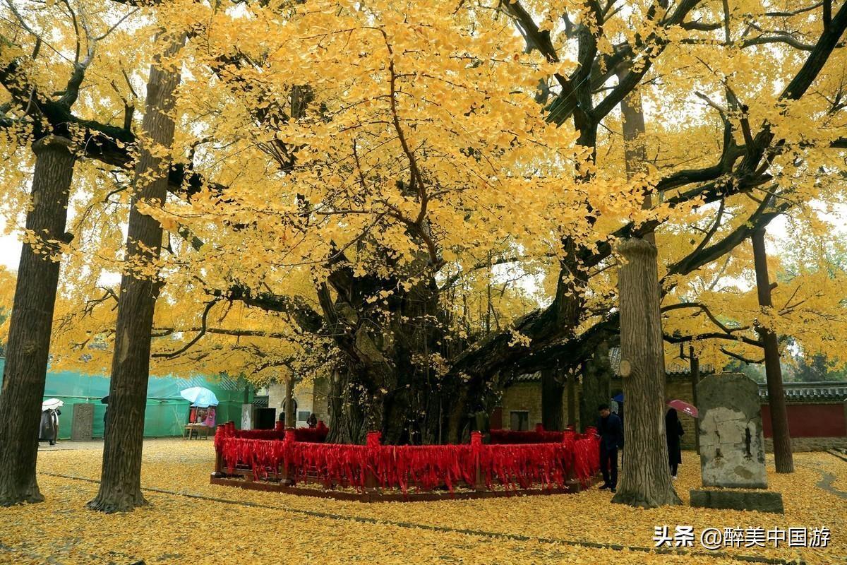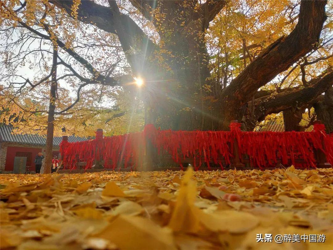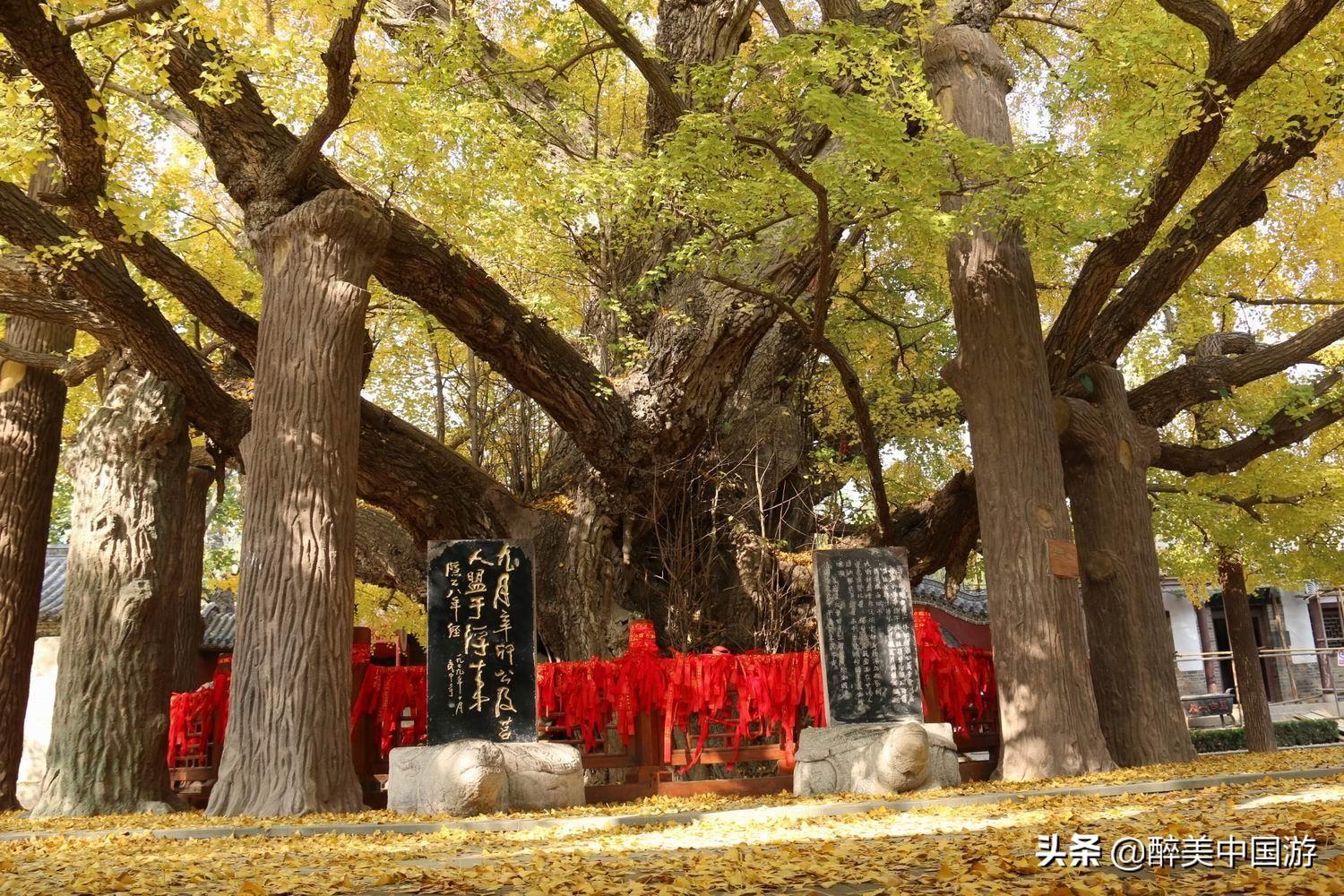关于天下银杏第一树:个人感觉天下银杏第一树是整个景区的压轴景观之一,据考证古树龄接近4000年,但具体详细树龄不得而知,但观其树干粗壮,参天而立,具有龙蟠虎踞之势,而且需八个成人才能合抱,个人感觉,至少也有超出千年的历史,堪称植物界的老寿星。令人惊奇的是,虽然经历了几千年的风雨,这棵雄壮的银杏树,目前仍然枝繁叶茂,生机勃勃,让人叹而观止,许多历史爱好者也惊奇,称之为生物界的活化石。如遇深秋,树叶都变为金黄色,撒落一地,欣赏价值极高,观赏性极强。