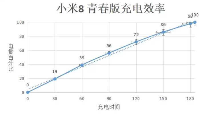 继续来看一下手机的续航功能:这款手机使用的是3350mah的电池,电池容量在小米8系列手机中处于领先的位置,在实测中,足够满足中度用户使用一天的要求,小米8青春版支持QC3.0快充,最高可实现18W快充,标配10W充电头,接口为type-c,在使用原装充电器充电时从%0到%100大概180分钟左右,充电中没有明显的发热情况。