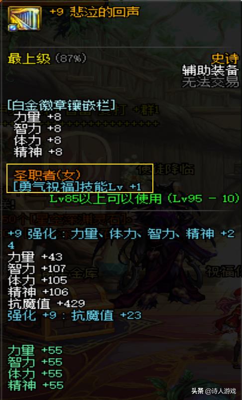 奶妈装备选择在于普雷装备、白金徽章、和称号选择