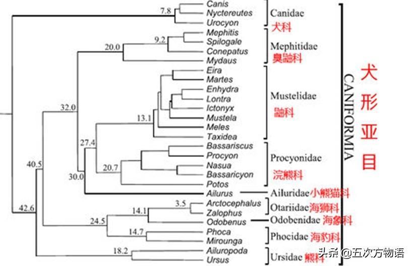 早在上个世纪八十年代,本砖家看过一本日本出版的科普书《动物的生态》,书中即把鳍脚类列为食肉目鳍脚亚目。现在形势又变了,人们发现鳍脚类的很多特征都和熊、鼬接近,于是鳍脚类被降维超科,归入食肉目犬形亚目。说鳍脚类和鼬类接近很容易理解,你看海獭,已是半海生动物,假以时日恐怕最终会演化成鳍脚类的模样。p.s. 当然,从演化示意图上看,也并不是特别近。