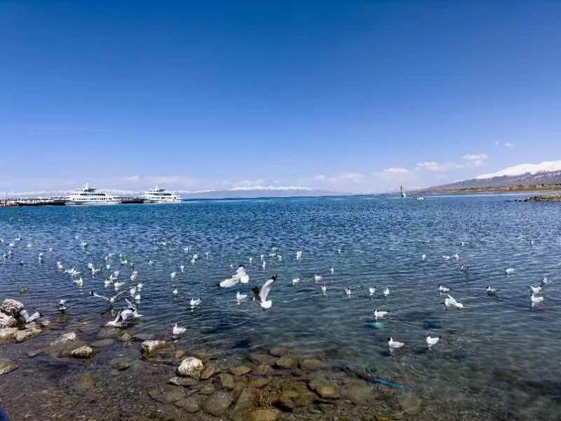 踏足二郎剑系首秀,青海湖给了我更大的拥抱。鸟岛是青海湖的象征,在它不开放的情况下,不到二郎剑就算不得真正到过青海湖。这处景区有传说,但那不过是人们的穿凿附会,略去不谈。它和半岛正相反,半岛是伸入海中的陆地,三面环海,另一面与陆地相连,而二郎剑却是深入陆地的湖面,三面被陆地包围,另一面是湖的延伸。站在这里,可以看到一望无际的碧蓝湖水,无风时波澜不惊,起风后波飞浪卷;也可以远眺水天相接之处,一条笔直的地平线分割开了湖面与天空。近有“沙鸥翔集,锦鳞游泳”(《岳阳楼记》);远有阳光与乌云斗法,时而道道光芒耀眼,时而片片乌云蔽日。抬头鸟儿起起落落,振翅翻飞;低首湖边潮涨潮落,戏耍得人进人退。直到夕阳加快了西下的步伐,我才悻悻地结束了第三次青海湖之旅。