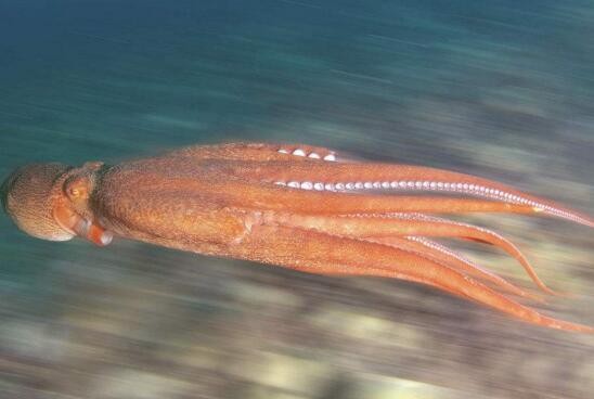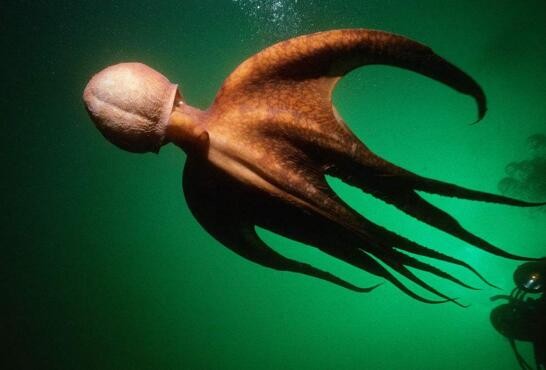 北太平洋巨型章鱼是一种体型非常大的章鱼,也叫巨人章鱼,目前仍旧保持着世界吉尼斯纪录的是,一只周长9.1米,重达272公斤的北太平洋巨型章鱼。它们十分聪明,甚至可以模仿人类开瓶盖。懂得如何伪装自己,以便于捕食。