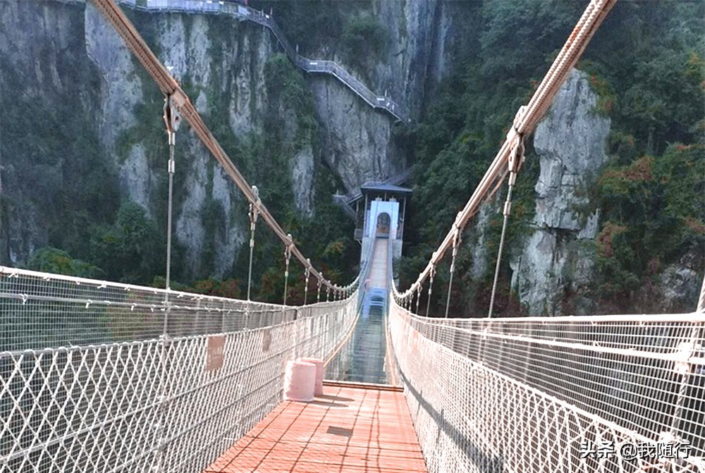 进入景区后,过“玻璃”桥,上“玻璃”栈道,然后往“石鼓潭”这边行走,到“古墓”,通过“七仙桥”,在这里往东可以先去看“瀑布”、“悬棺”等,然后继续往南,通过“栈道”,“神龙”、“葫芦”潭。