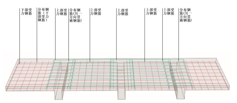2、分布钢筋:通常出现在板式结构构件中,布置在受力钢筋的上部,与受力钢筋垂直,起固定受力钢筋,传递荷载至受力钢筋的作用,同时还有抵抗温度应力与混凝土收缩应力的作用。