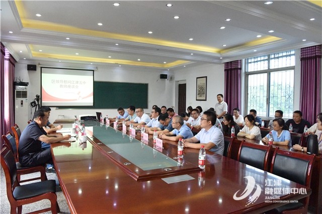 熊伟一行参观了江津第五中学的校园,仔细察看校容校貌,详细了解学校规划建设和教育教学管理情况,关切询问师生们在校学习、工作和生活状况。随后,他还与校领导及教师代表亲切座谈,就学校困难和教师代表提出的问题,做了详细的回应。