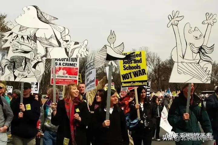 正是在这段时间里,格尔尼卡开始了画布之外的生活。它成为德累斯顿、柏林、广岛的代名词,成为手无寸铁的平民受到攻击的地方的代名词。随后,它开始引起反战抗议者的特别共鸣。