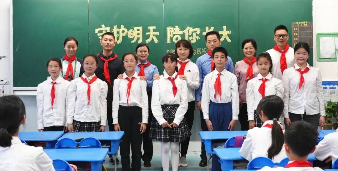 2024年5月13日,吕卉(后排中)与检察官一起,走进合肥市师范附属第四小学,就正在创作的广播剧征集剧名。