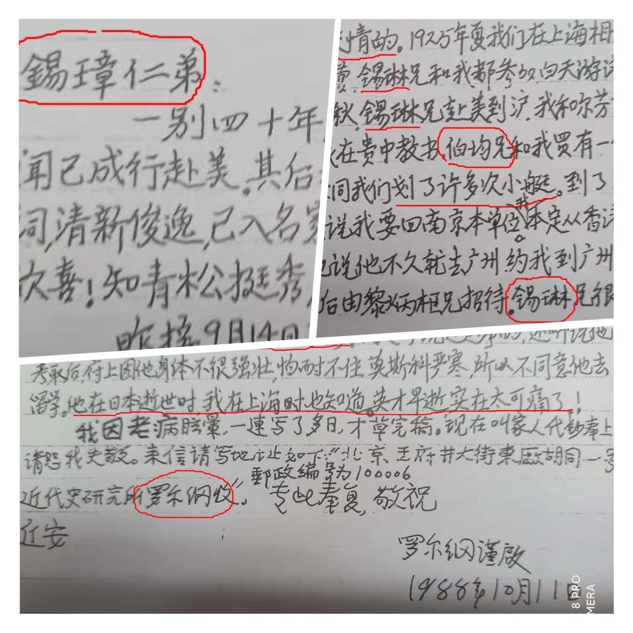 沈公锡字辈的子侄及林伯均,当年也是罗尔纲的密友。1988年罗尔纲给笔者父亲“锡璋仁弟”的家书中,还谈到不少与锡琳、锡瑚、伯均的轶事。