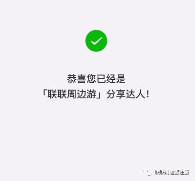 填写提交后系统会提示【恭喜您,您已经成为联联周边游达人】,