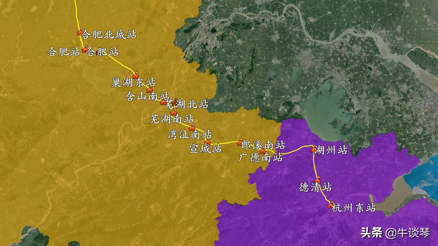 今天给伙伴们带来的是商合杭高速铁路线路图: