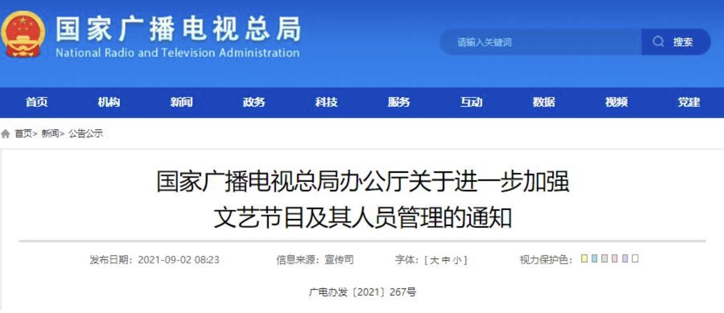 2021年9月2日,广电总局一纸宣文, 引发了中国内娱的大地震。