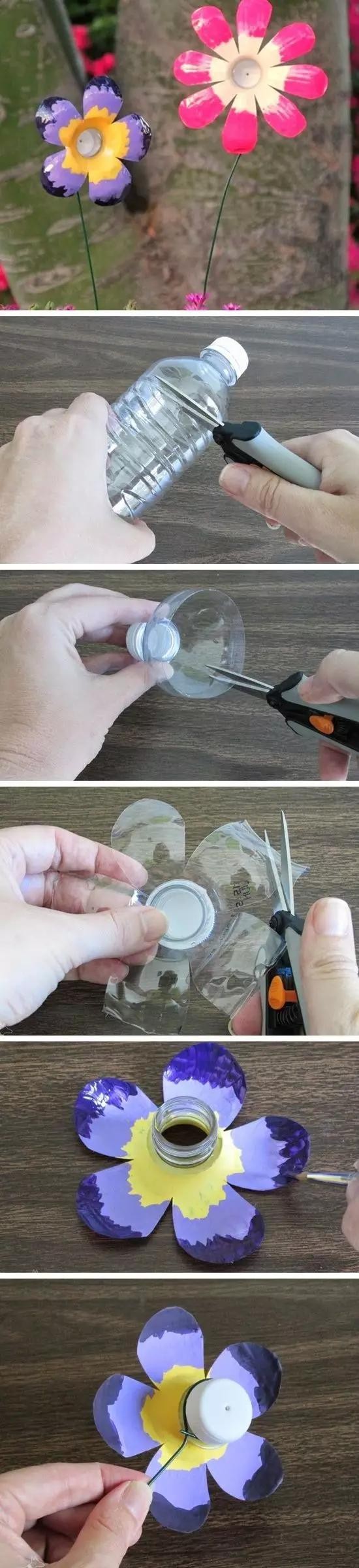 1:用塑料瓶剪成一块一块的花瓣