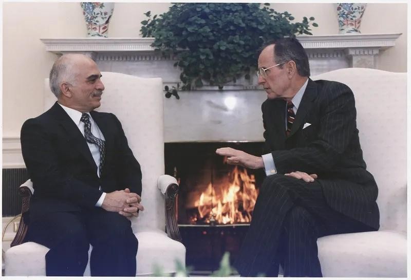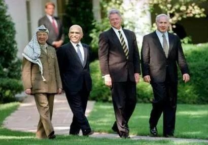 侯赛因国王在美国怀伊庄园(左一为阿拉法特,右边是克林顿、内塔尼亚胡)