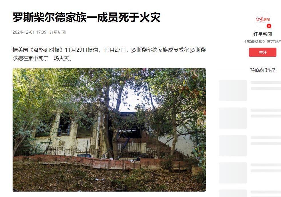 信源:罗斯柴尔德家族一成员死于火灾——2024-12-01·红星新闻