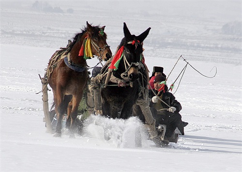 老猎人说,我年轻时冬季曾独驾马爬犁给吉林市的亲戚送过年的猪肉、冻豆腐、黏豆包、木耳、蘑菇等土特产。未料,马爬犁一进入松花江雪道就被十几只狼围上了。