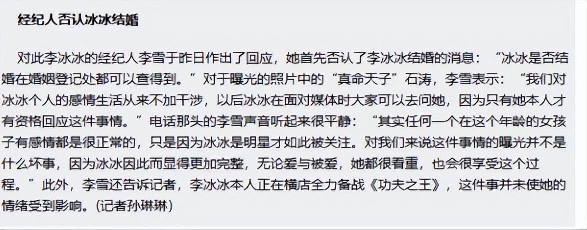 3、扬子晚报《传李冰冰牵手富商多年 网友曝证据确认对象为石涛》