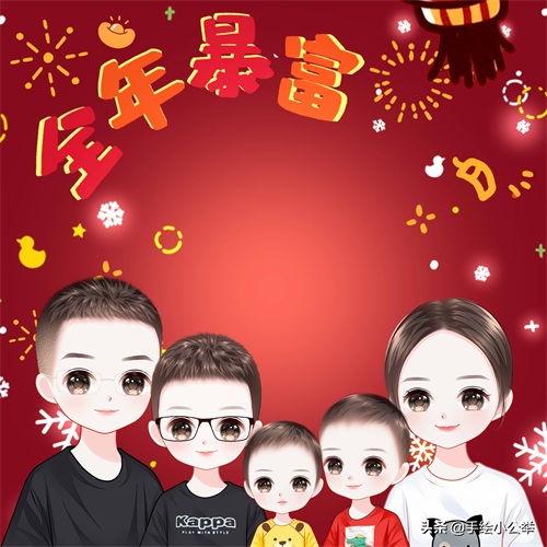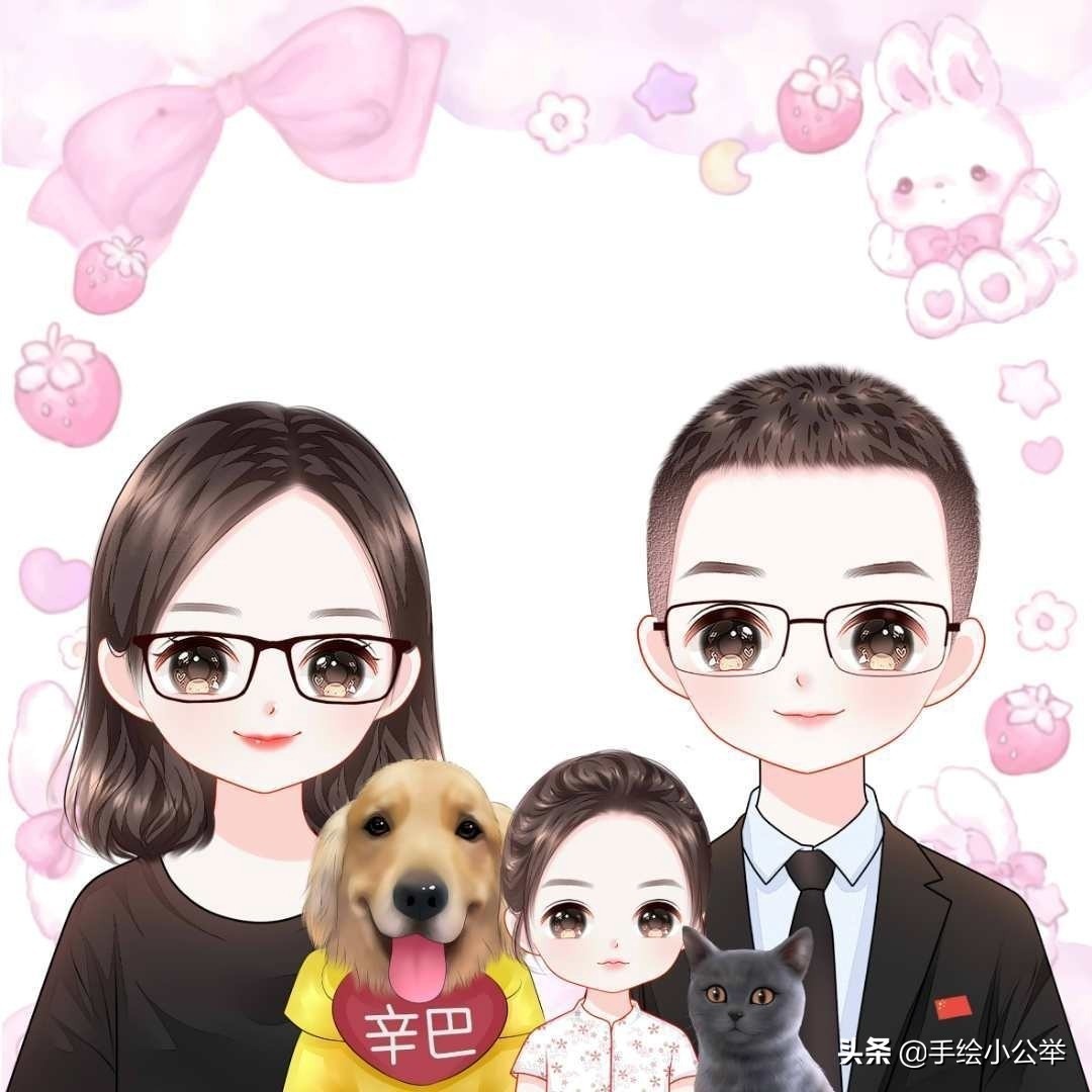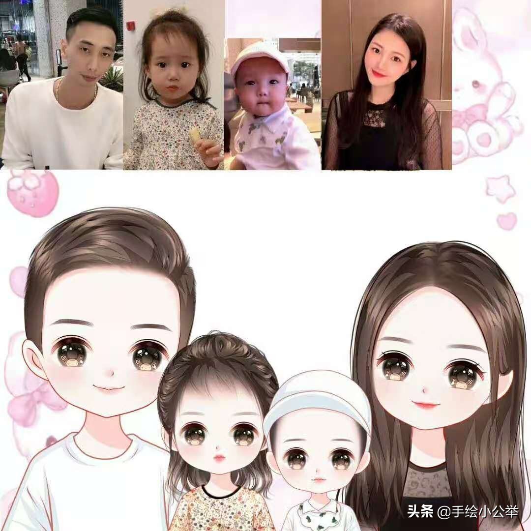 一家四口五口卡通真人手绘全家福,可爱呆萌,有趣有意思..