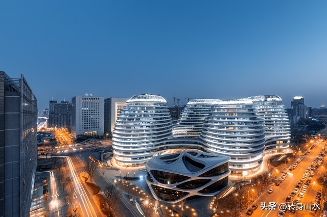作为北京最具未来感的建筑之一,银河SOHO的夜景令人震撼。整座建筑群在夜晚灯光的照耀下,宛如进入了一个科幻的世界,充满着现代建筑的无限魅力。
