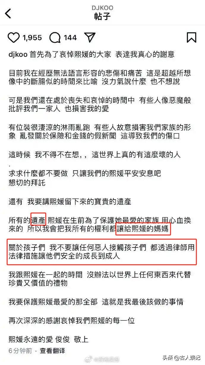 反观作为大S妹妹的小S,发文的内容也是一改再改,先是说大S自己的遗愿是树葬。