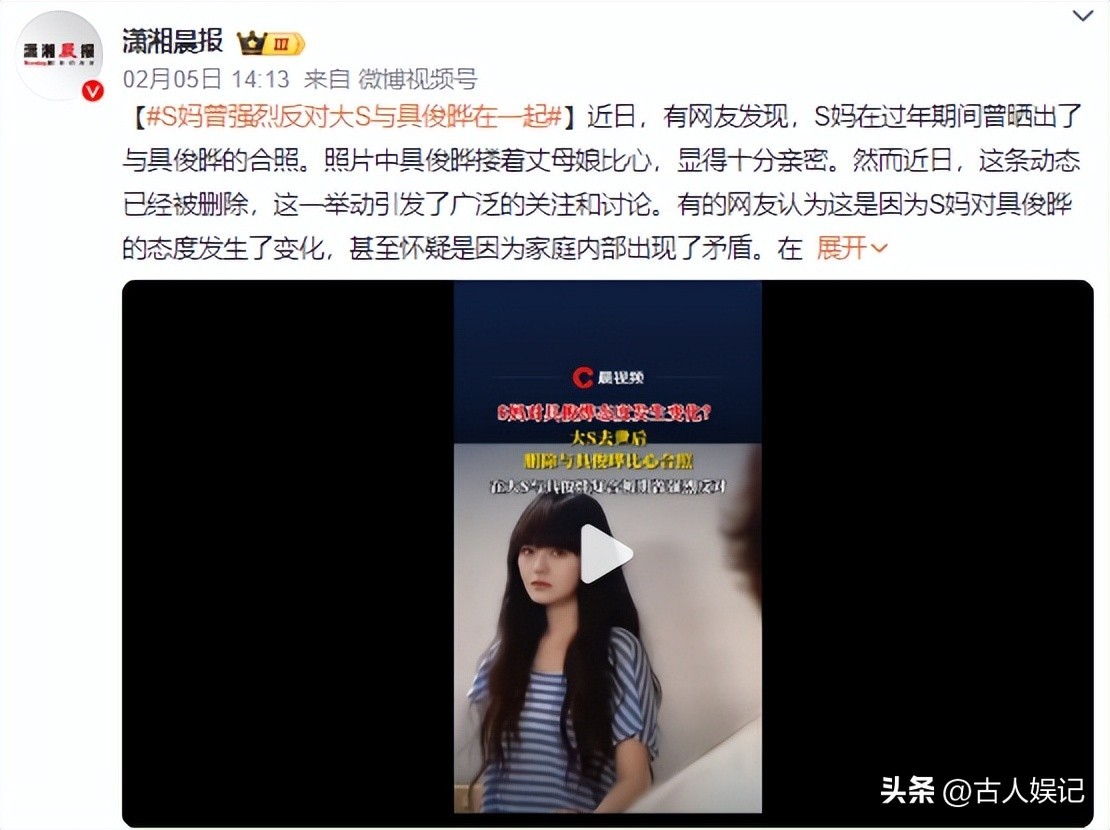 再结合大S刚离世时,S妈又删除了她与具俊晔的合照。