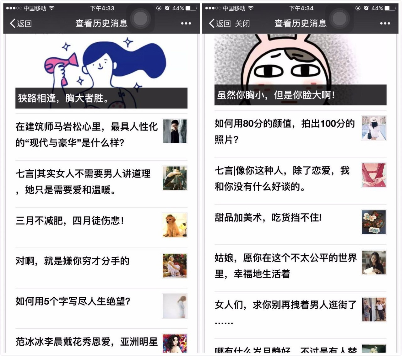 之前的视觉志是一个纯艺术格调的媒体,那种小众文章的自然增长每天到1000就停滞了。小众文章虽然逼格高,但是阅读量始终上不去,考虑到未来发展,视觉志开始放下身段,调整内容。在逼格和阅读之间不断探索,开始慢慢做出了一些爆文。在2014年10月的时候,粉丝也迅速增长到了100万。