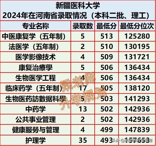 新疆医科大学2024年分省分专业录取分数