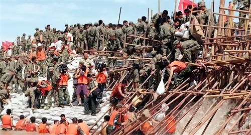 终于,在第六天的黎明时分,溃口被彻底堵住了。这道临时堵水墙被层层加固,与大坝坝体一样宽实,成为了抗洪史上的"千年一堵"。