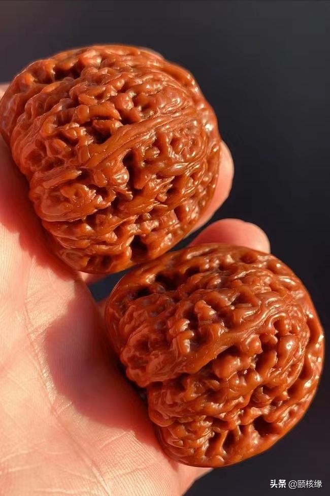 这颗古树南疆石结出的核桃,也叫涿鹿南疆石,是最正宗的南疆石。其历史可以追溯到清代,因为核桃的纹路麻纹较多,在当时它还叫麻墩,因产量不高、上色很慢所以在清朝年间不是主流的高端品种。慢慢被人盘出包浆后,颜色异常红润、质如玛瑙,随后的知名度和受欢迎程度空前提高。