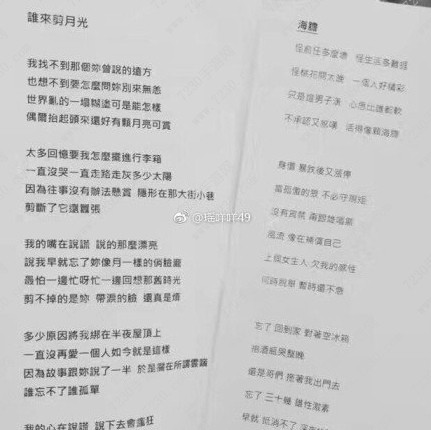 随后,网上又曝出陈奕迅两首新歌的歌词。
