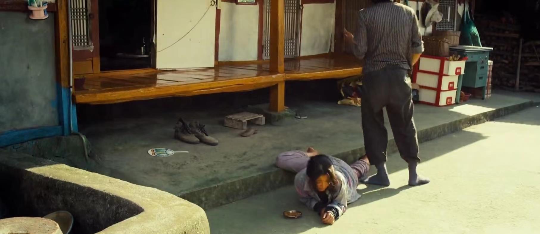 只有一面之缘的妓女在为她哭喊着叫别打了,还有妍熙试图用自己的小胳膊小腿阻止。