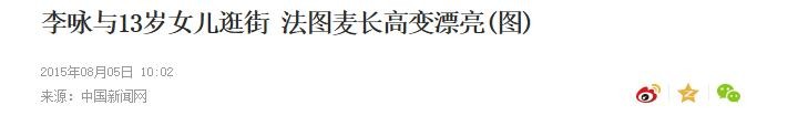 中国新闻网2015-08-05:李咏与13岁女儿逛街 法图麦长高变漂亮(图)