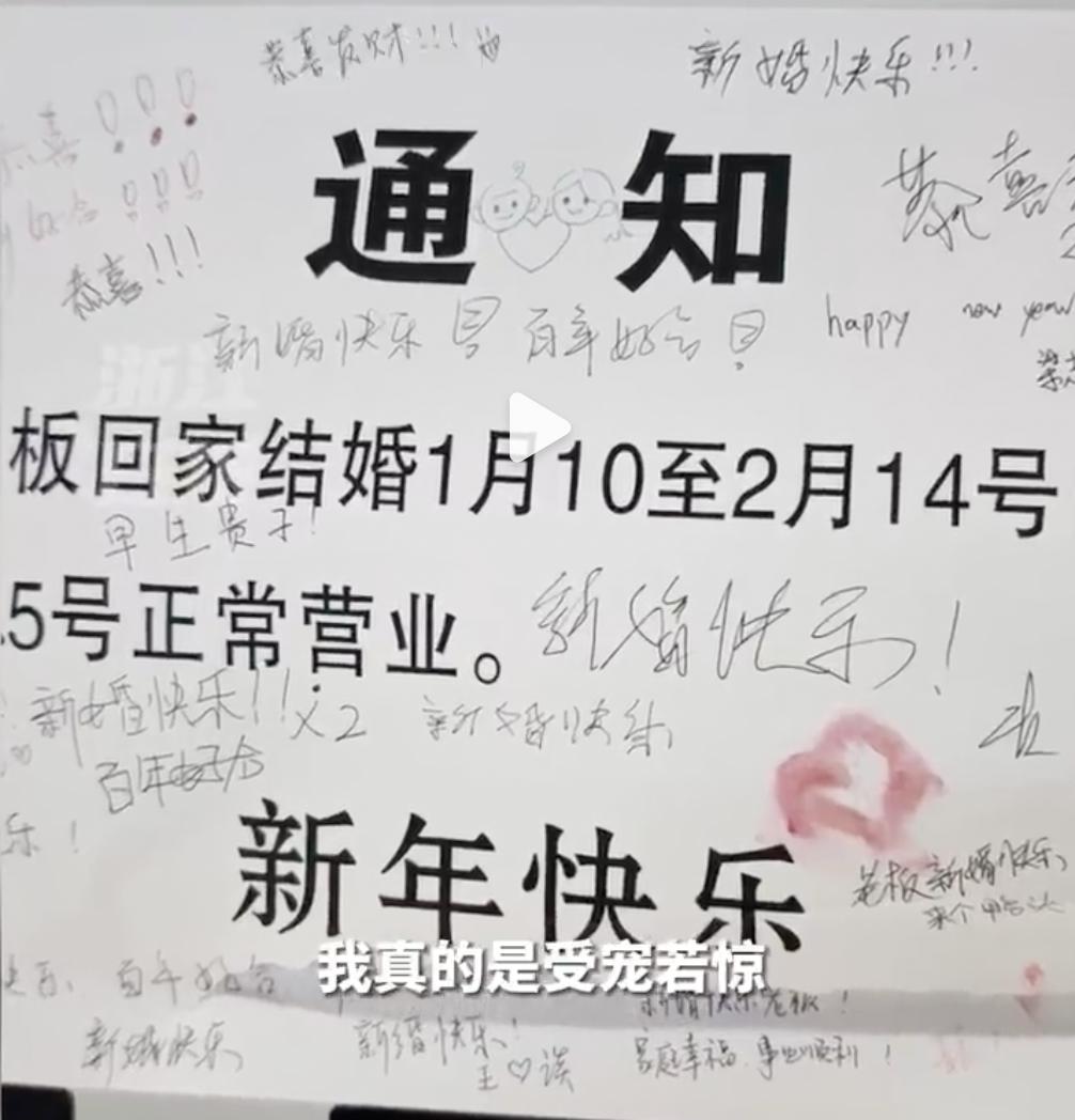 店主回家结婚贴“请假条”,接下来一幕没想到……