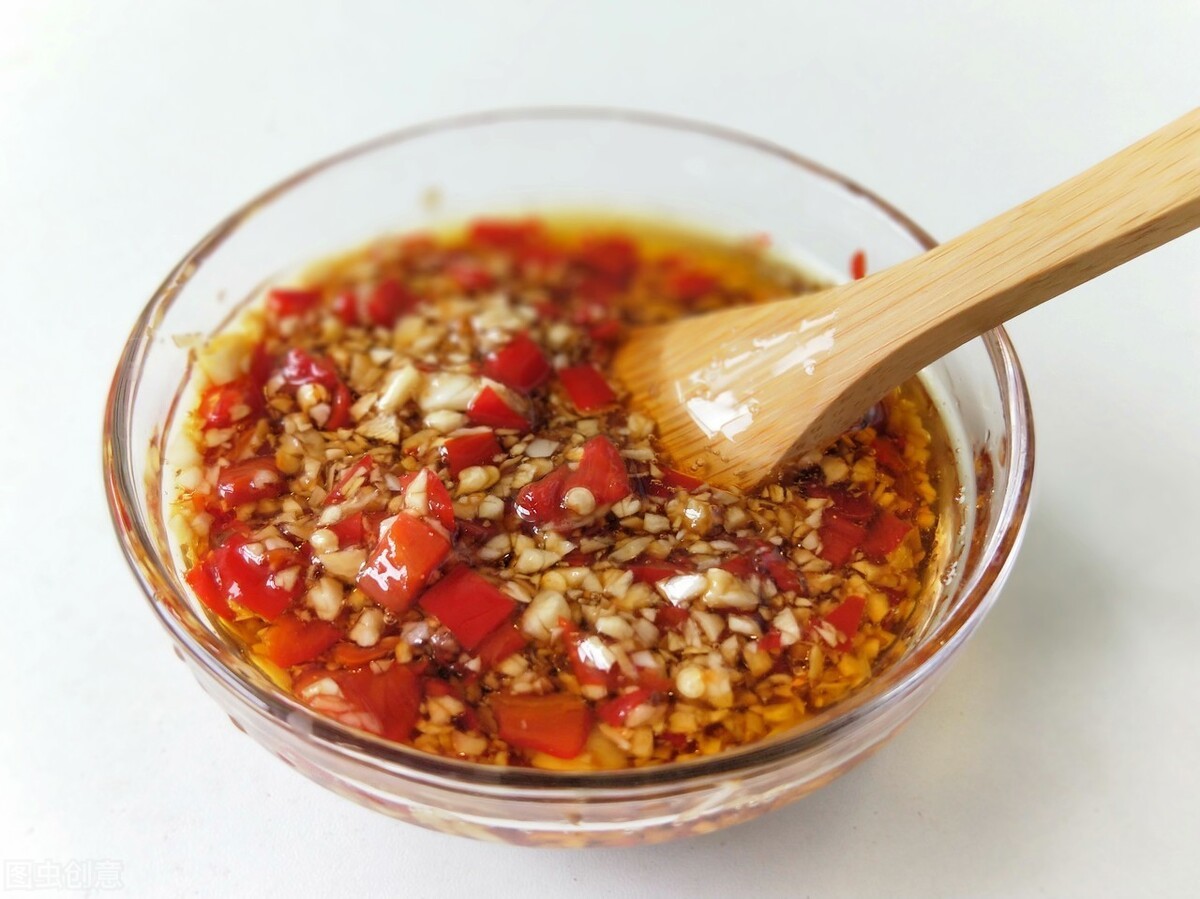 第一步,为了合理利用做饭的时间,在制作料汁之前锅中加入清水先烧开水。然后把葱、姜、小米辣、蒜切末,放到碗中依次放入生抽,盐,香油,白糖、五香粉搅拌均匀。再放一点老干妈和白芝麻继续搅拌均匀。锅内烧一些跟平时炒菜差不多量的油,油热之后浇在葱姜蒜上。刺啦刺啦的声音,蒜香、辣椒香的香味瞬间飘出来,特别好闻。