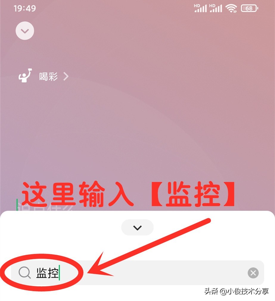此时就会跳出搜索框,在【搜索框】中输入【监控】两个字