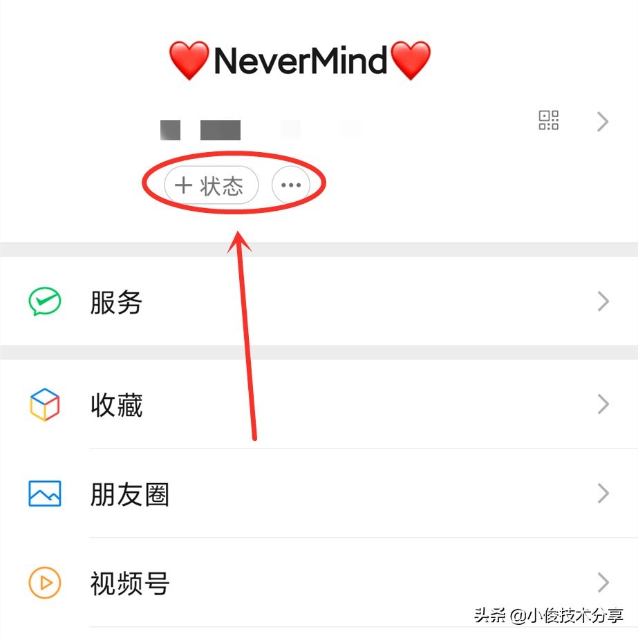 我们打开微信,打开个人信息页面,接着点击【状态】