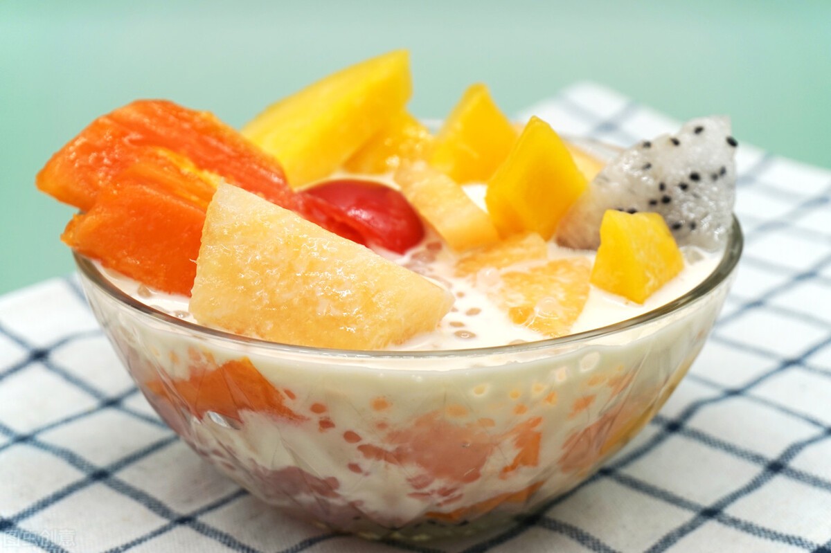 做法:水果洗净处理好,养生壶注入纯净水并烧开,放西米精煮10分钟,再焖10分钟直至熟透,捞出用凉白开冲至不黏腻,倒漂亮的碗里,加椰汁和水果即可。