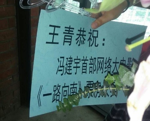 大宇第一次主演的网络大电影发布会,王青无法到场,却也送来了花篮庆贺。