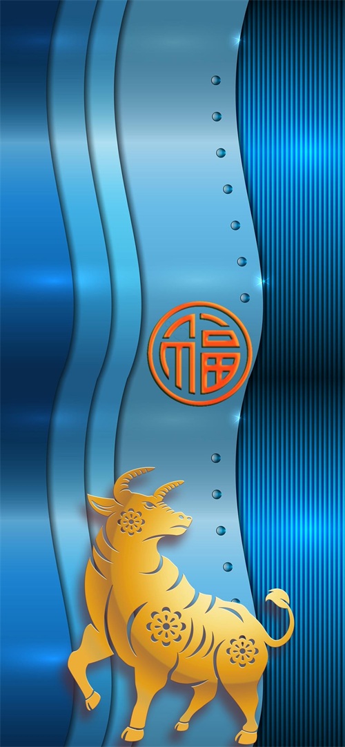 下面这张壁纸,福图一刻用2张图片拼接成背景,我在中间放置了特效福字,下方放置了金牛元素,寓意股市大牛,福气十足。