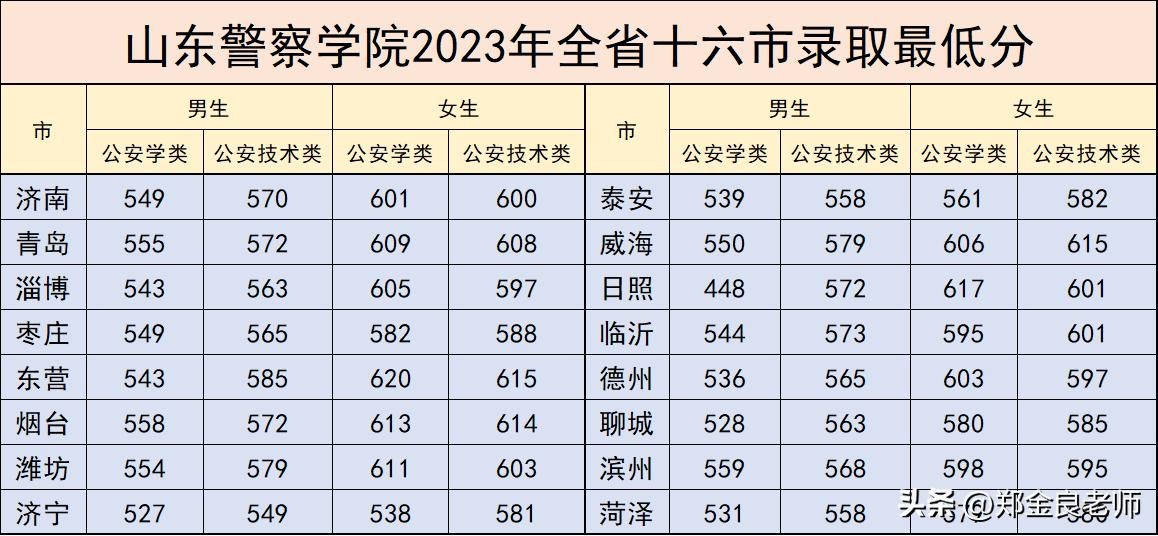 山东警察学院2023年录取分数已经公布,与山东省2023年一段线443分(本科线)相比,哪怕是分数较低的德州、聊城和菏泽等地区,男生也都在530分以上, 甚至超过了山东省的特招线520分,女生更不用说了,像济南、青岛、威海、东营和烟台等地区,差不多都在600分以上,同样的分数,985双一流的中国海洋大学都有机会。
