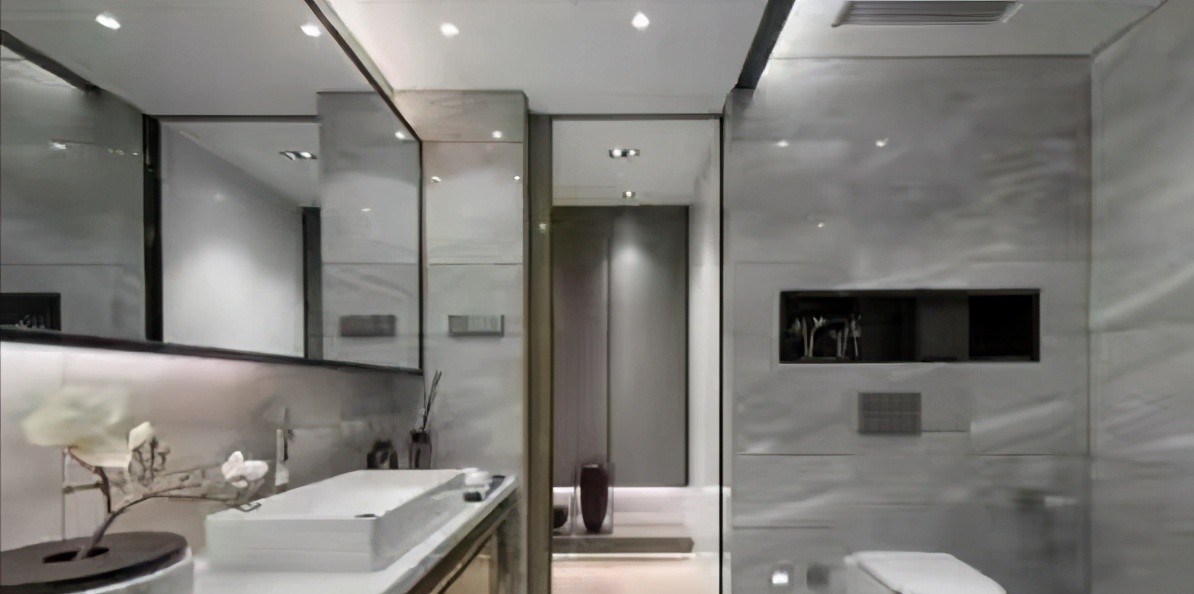 卫生间墙面整体选用了灰色大理石进行设计很是清爽舒适,整面精致设计使空间宽敞很多,不得不说夫妻俩人的关系很好。
